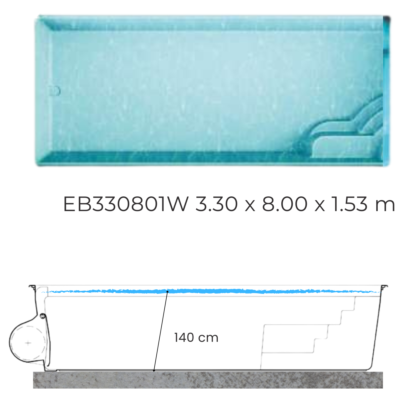 Le piscine hanno una altezza esterna di 153 cm che consentono 140 cm di livello acqua.
